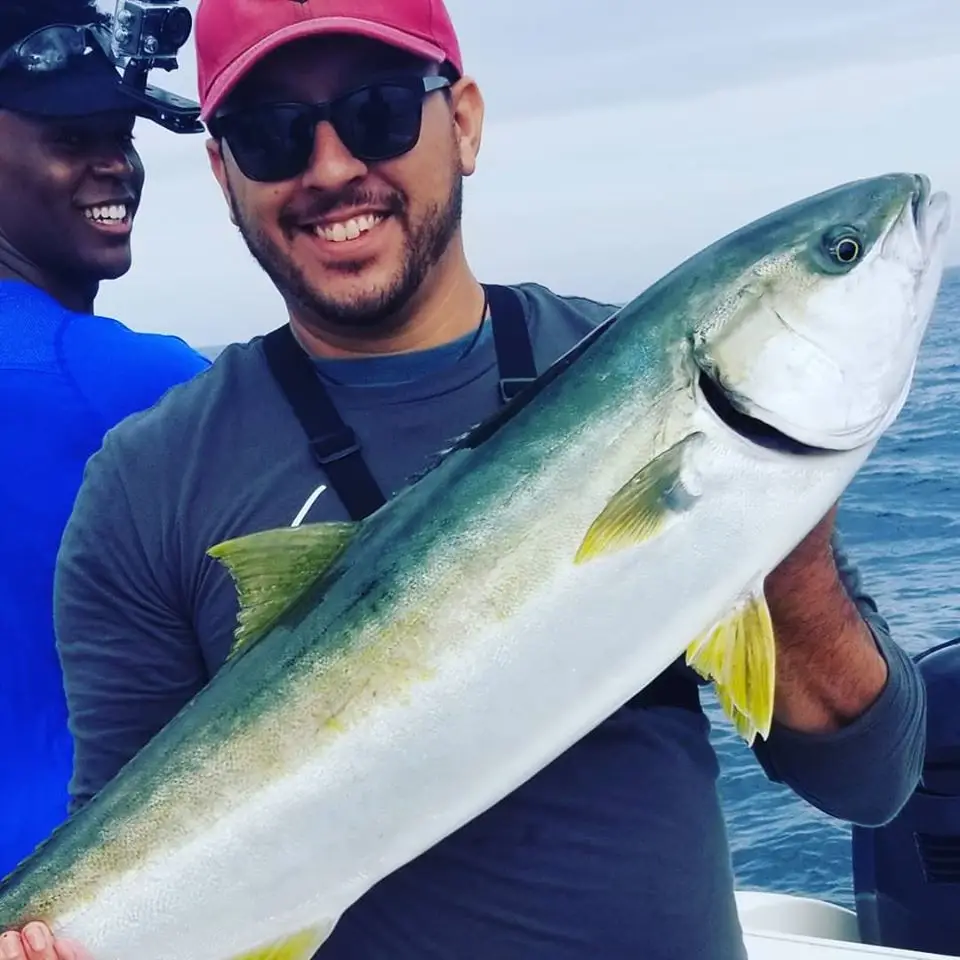 Our charter fishing vessel is “Old Spool”. The boat is a 25 foot pilot house Parker powered by a single 2019 Suzuki 300. The pilot house can get you out of the elements and there is a large bunk you can lay down on if needed. The boat has a 9′ 6″ beam which provides an extremely stable platform without much side-to-side rocking. The boat is equipped with everything you need offshore or at Catalina island . It has radar, GPS, autopilot, 65 gallon bait tank, electric trolling motor, fish finder, fresh water tank, head, and all the necessary safety equipment. A very stable and comfortable fishing boat made for our local waters. A fishing guides dream boat!