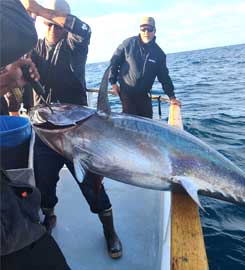 We just got back in from our maiden voyage. 14 anglers got 54 yellow fin, 14 blue fin, & 1 yellow tail. Great day of fishing. We are online and ready to get back out there. You can book a trip at pointlomasportfishing.com