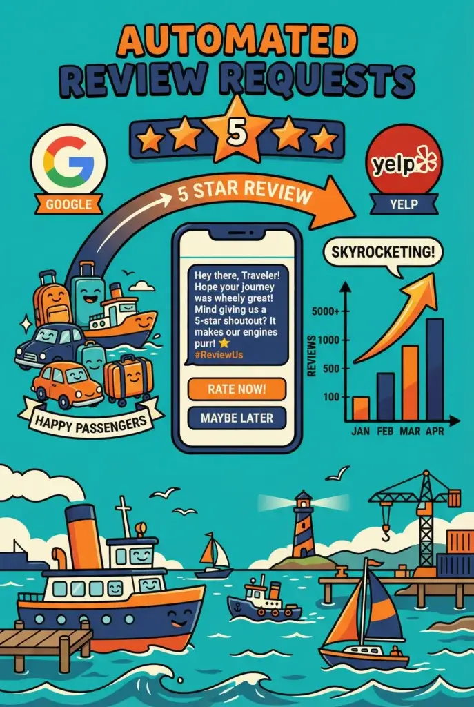 - Review routing: Post-trip, happy customers go to Google. Issues come to you first.