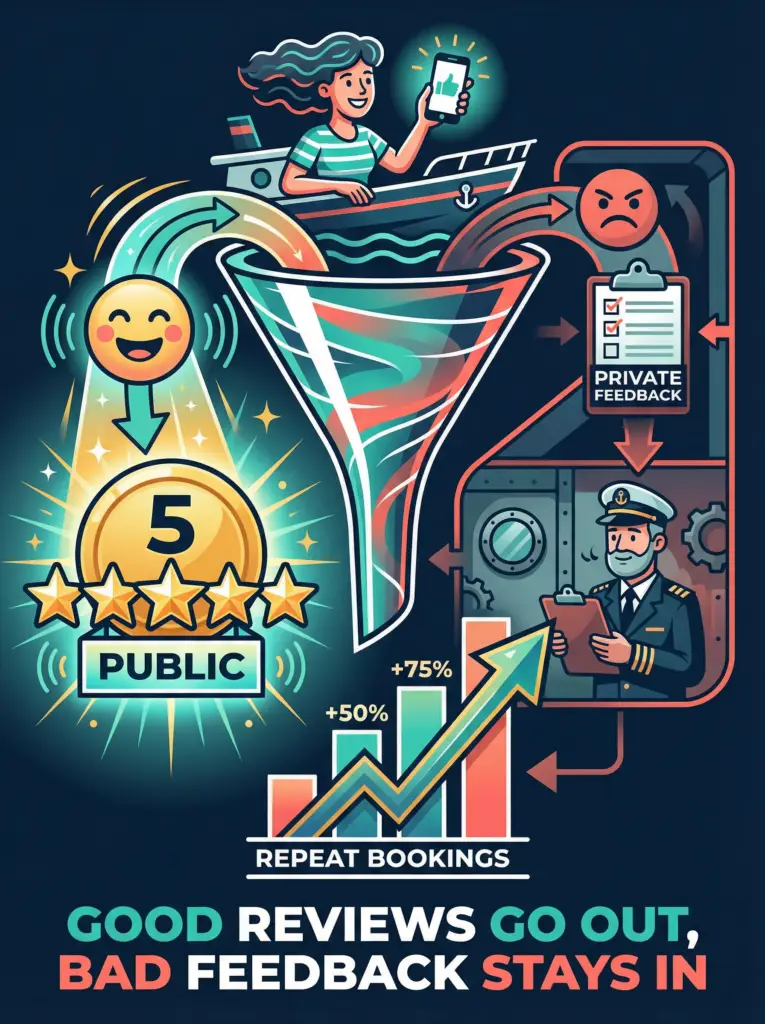 Your Google rating is one of the most powerful booking drivers you have: a difference of half a star can mean the difference between a customer booking with you or booking with the boat next to you at the dock.